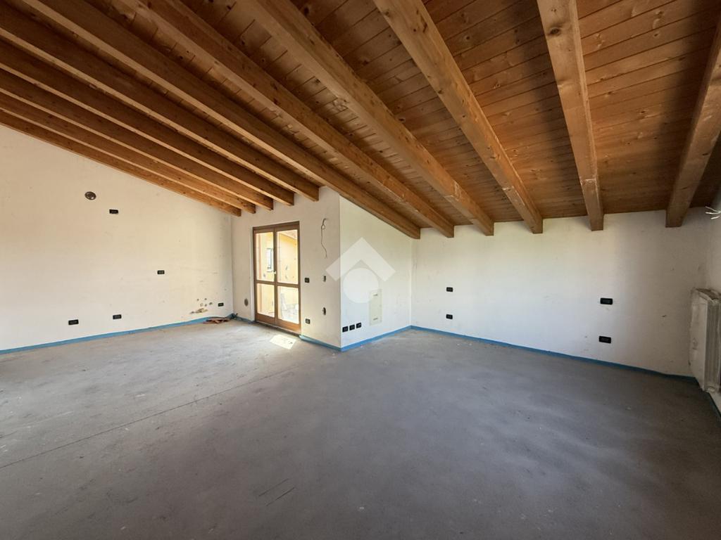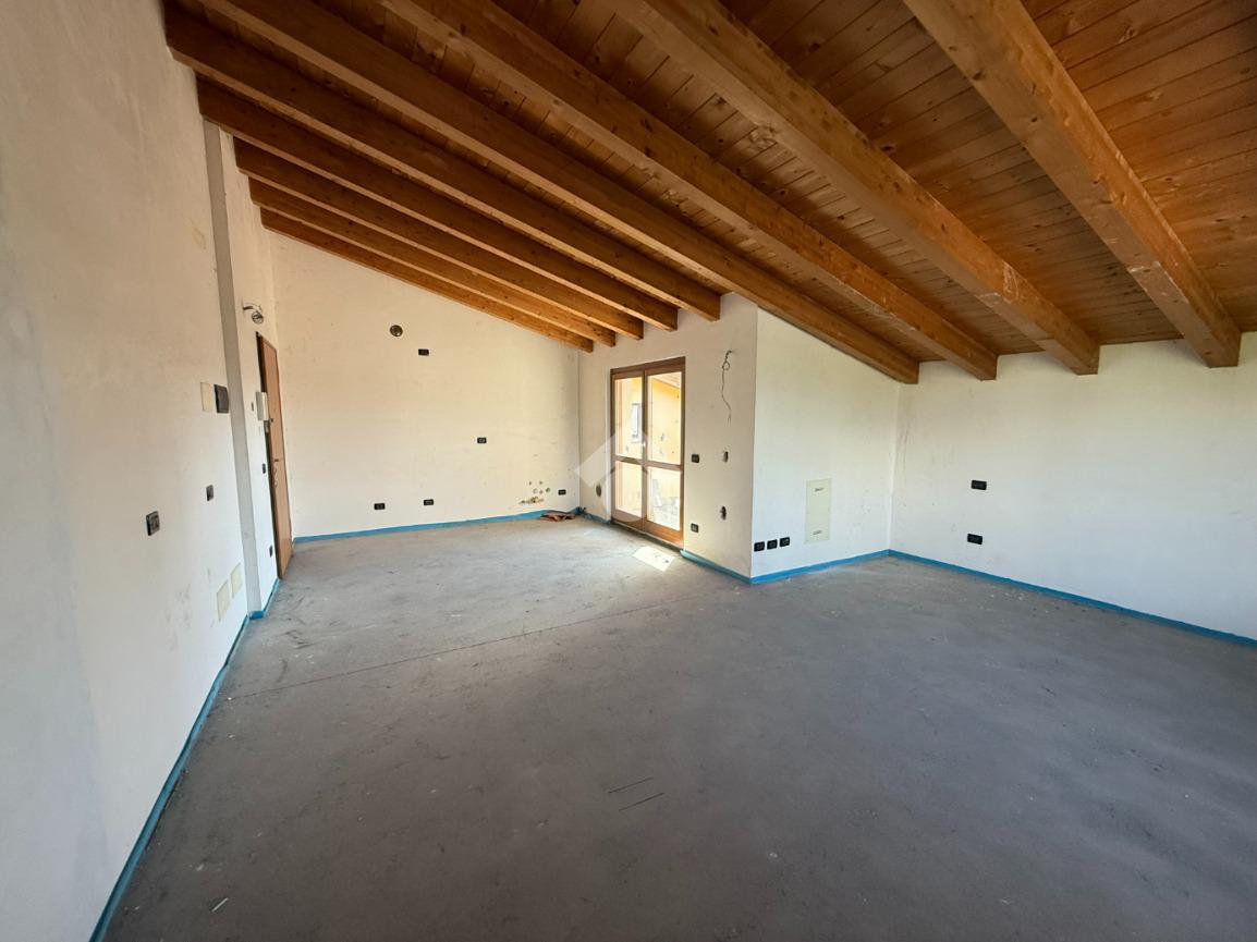 L'immobile, caratterizzato da travi a vista, offre un ambiente luminoso e accogliente, perfetto per chi desidera uno spazio da personalizzare secondo i propri gusti.