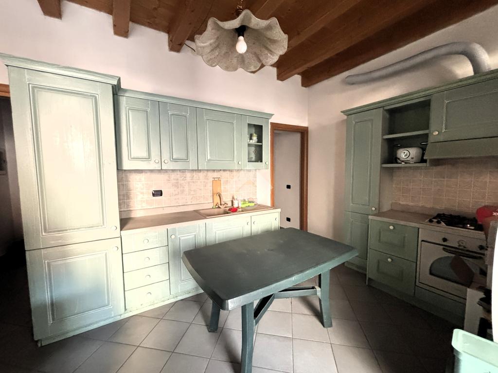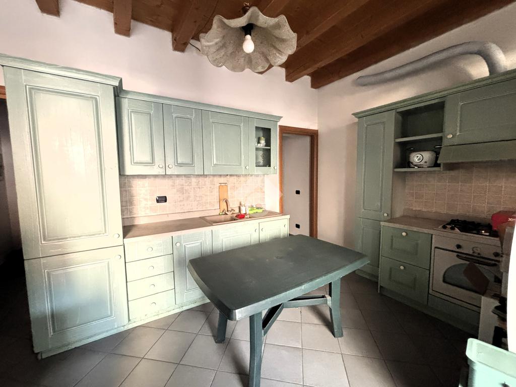 Al piano terra, l'ingresso si apre su una cucina abitabile e un bagno cieco.